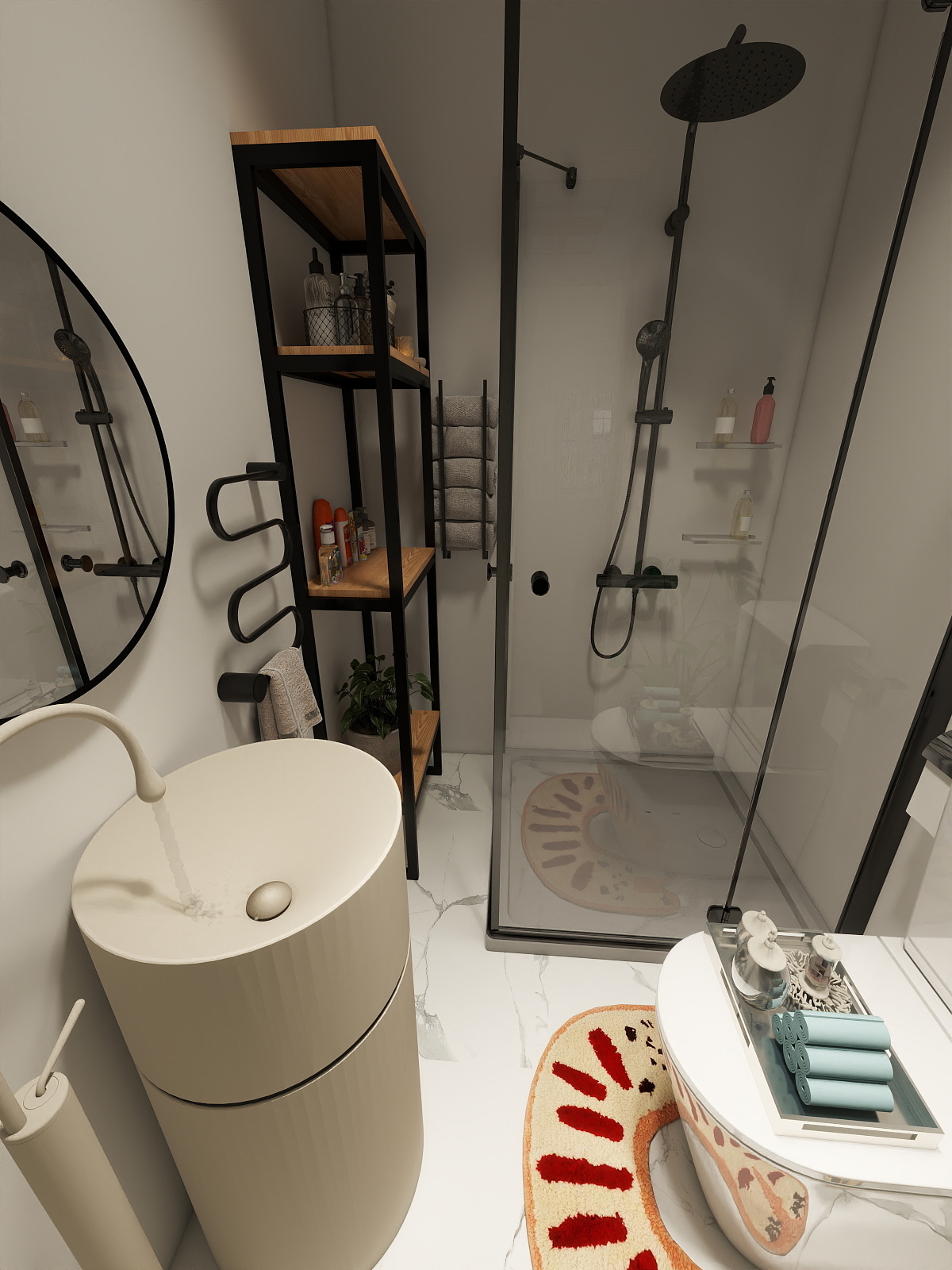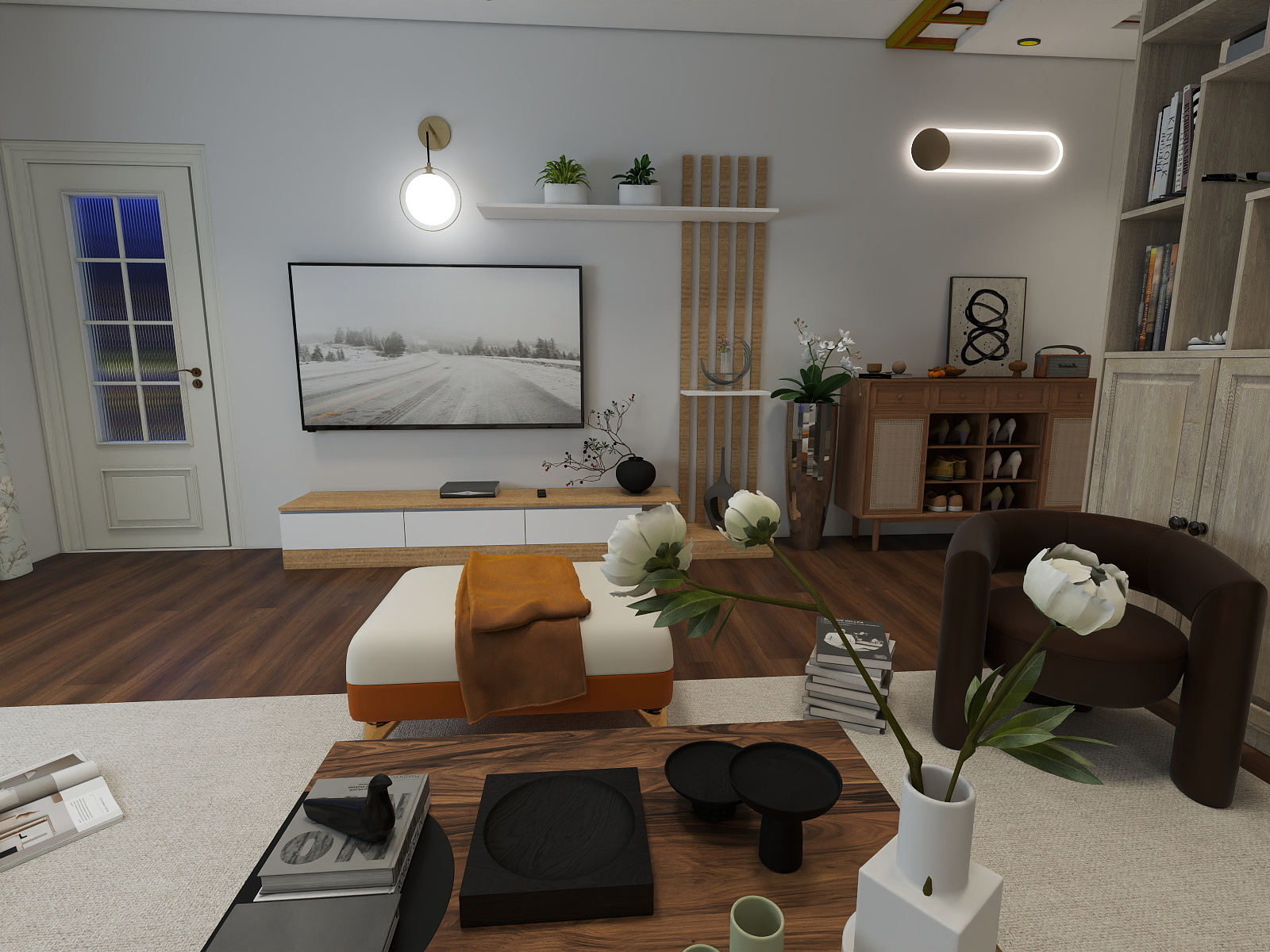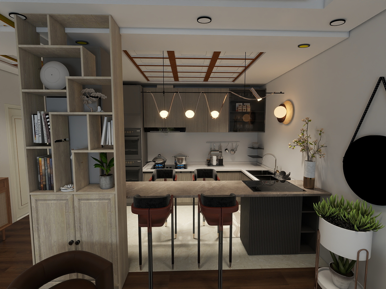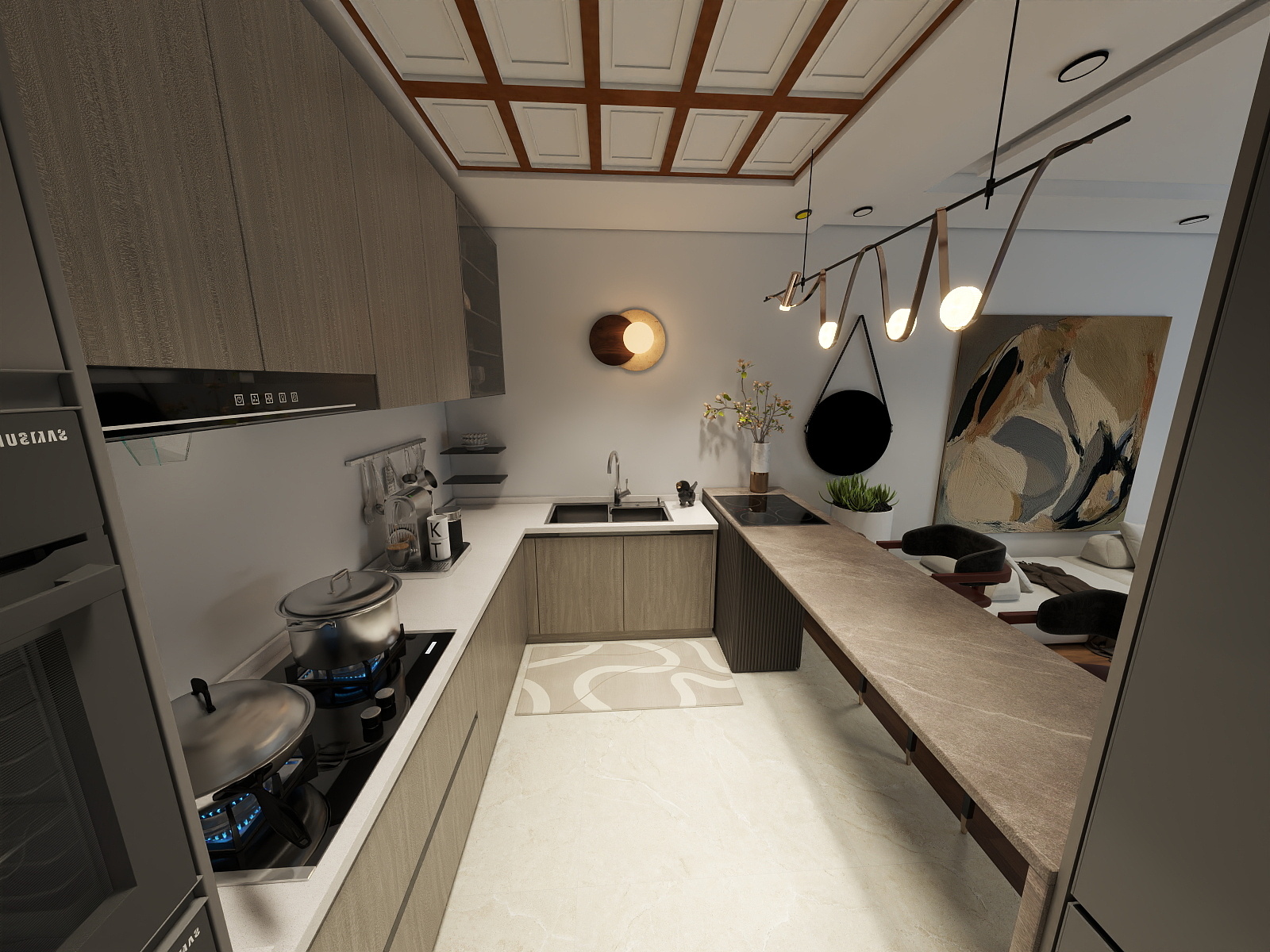 Warm, practical textures, built-in storage, and lighting solutions to keep the space airy, clutter-free, and timeless.