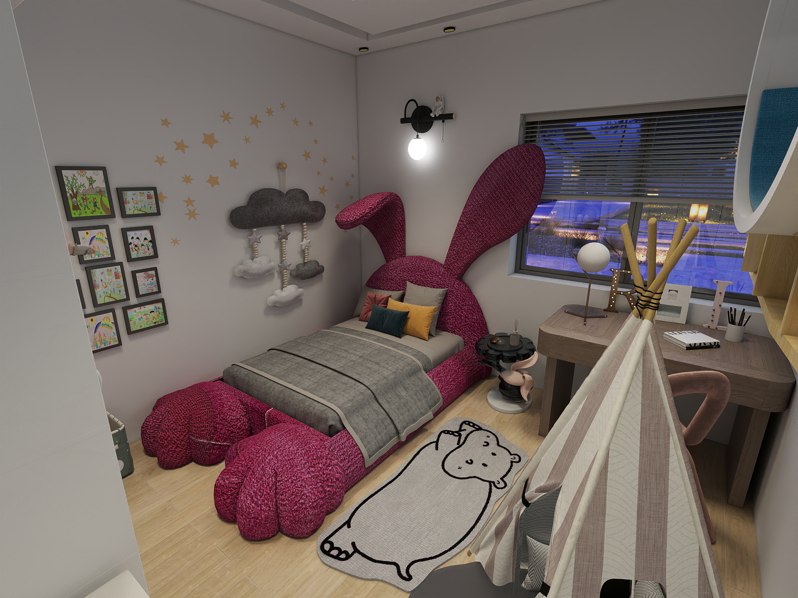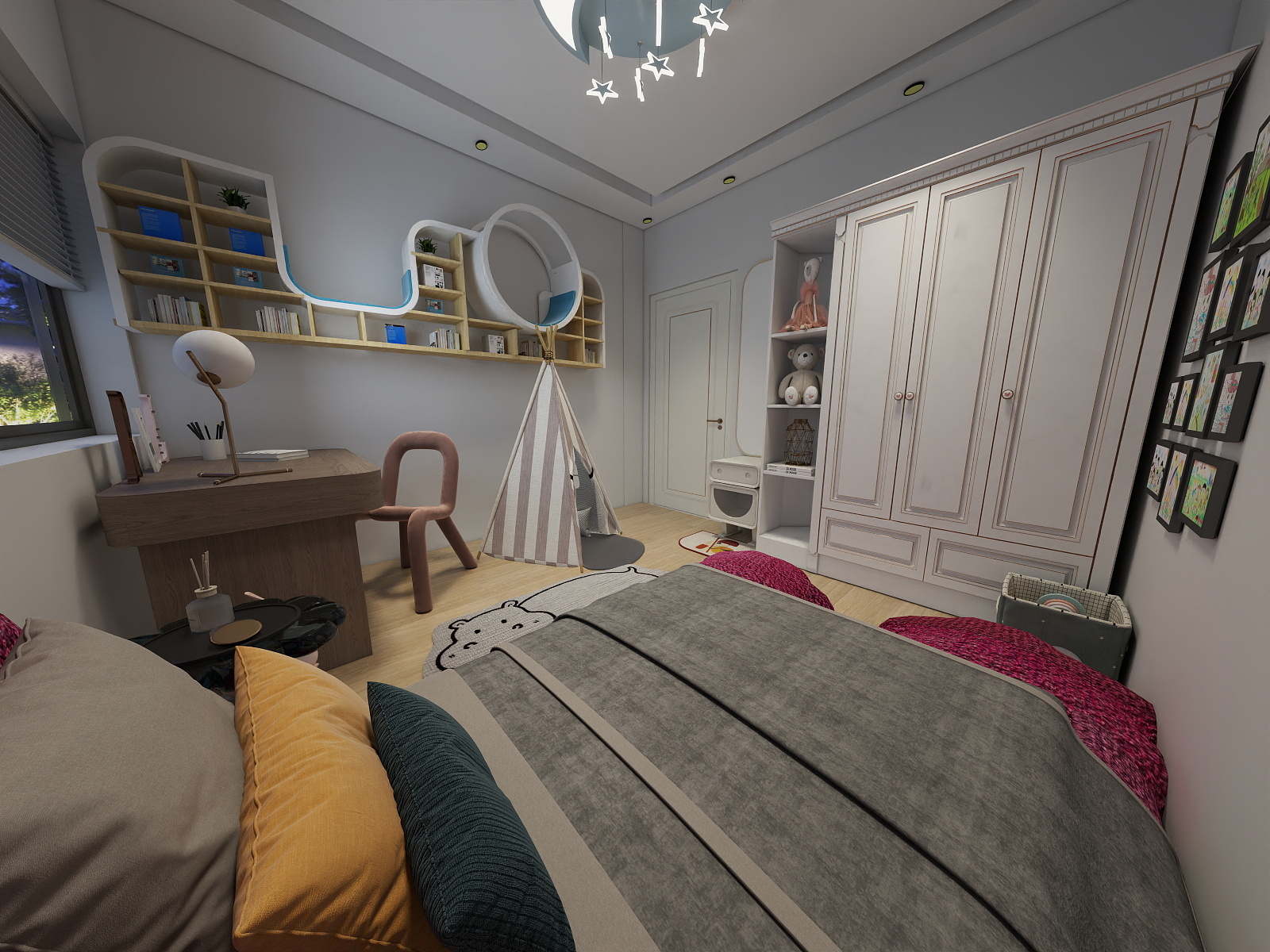 Calm, clutter-free design with open layout, reading corner, kid’s room, functional storage, and long-lasting simplicity.